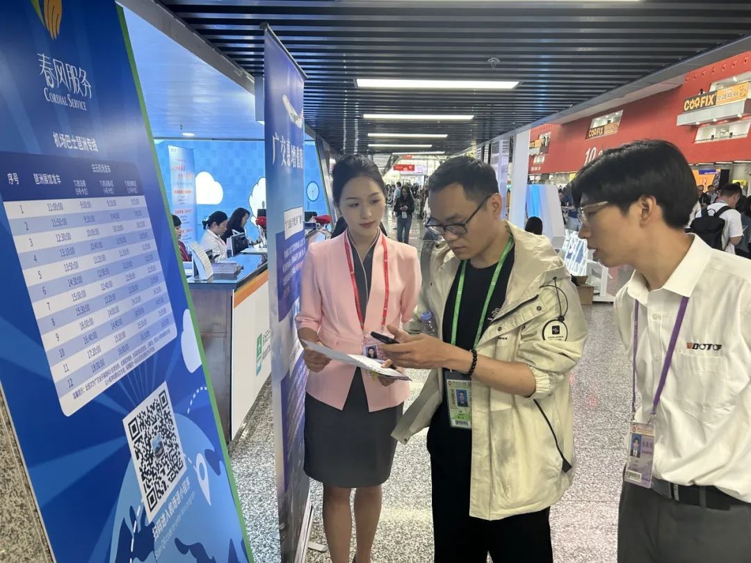 白云机场服务团队秉承“春风白云、美好出行”的服务理念,让全球客商在展会现场即可完成“值机—参展—登机”的无缝衔接。截至4月27日,该服务柜台已累计服务客商超 5000人次,收到感谢信10余封。