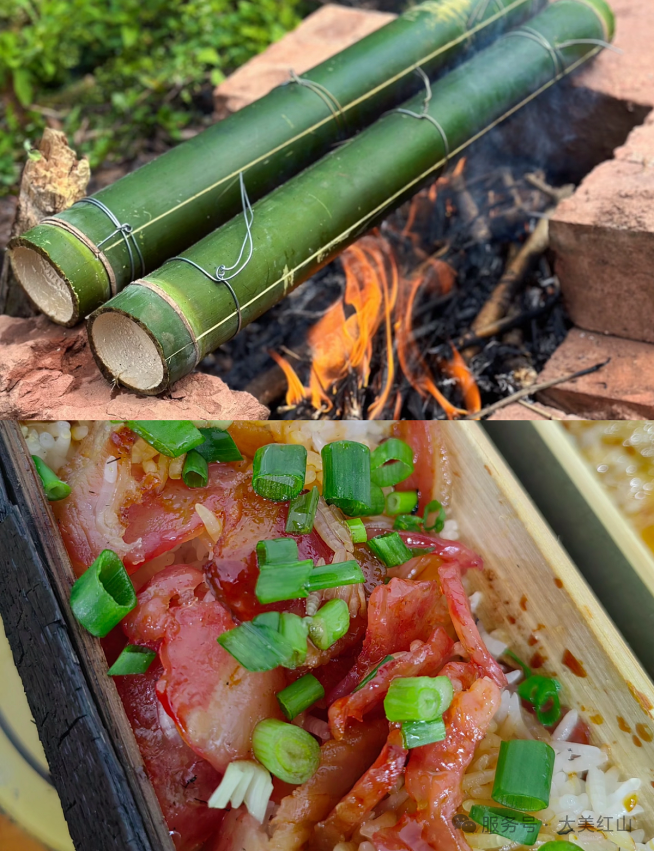劈竹生火,烤制山野本味,传承自然智慧。在这里,你可以品尝到正宗的柴火竹筒饭,感受乡村美食的魅力。