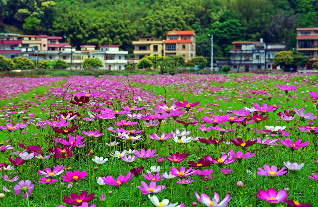 当下正值格桑花盛放期,近花都区西坑村村民委员会的数十亩格桑花田,宛如彩色地毯铺展在山村之间。格桑花又称“幸福花”,花色绚丽多彩,预计五一期间全面绽放,花期可持续两个月。这里交通十分便利,出了王子山高速口开车不用10分钟可达。